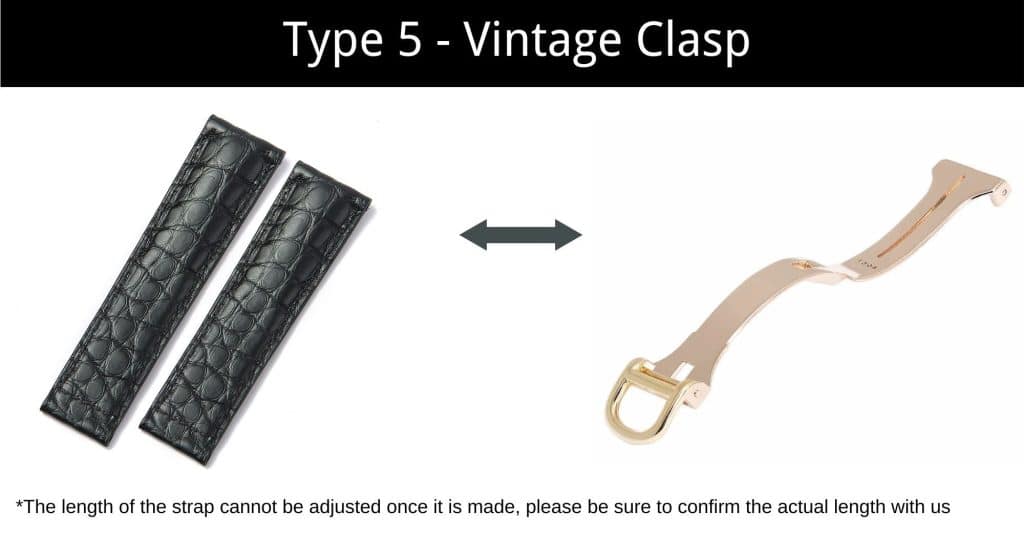 A Cartier Vintage Buckle is a classic watch clasp design where the strap has a fixed length on each side, meaning it cannot be adjusted. The ends of the strap are flat, allowing them to be compatible with a vintage deployment buckle.